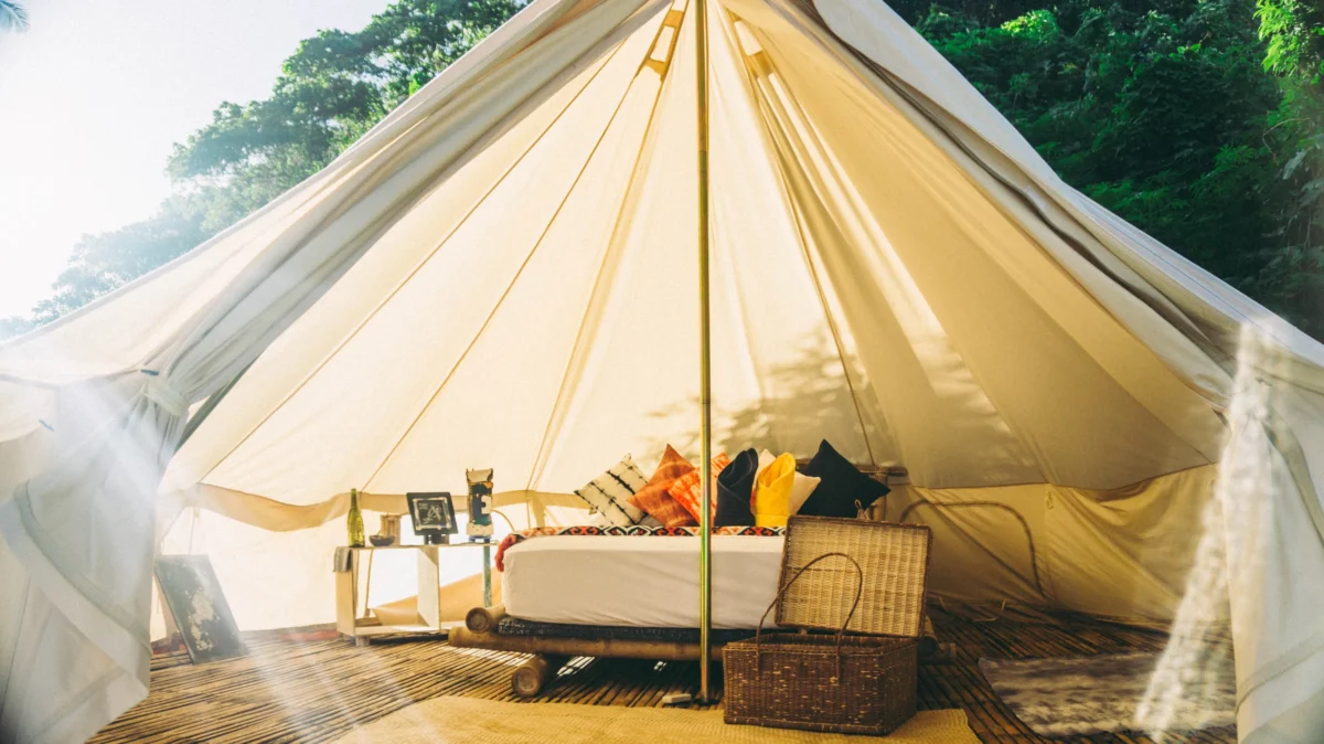 The Lux Tipi has its own private bathroom, while the rest have shared bathrooms.